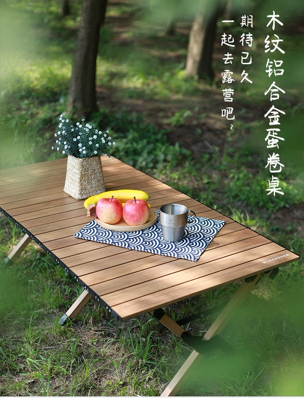 Hươu đen trứng cuộn bàn ngoài trời bàn gấp bàn cắm trại ngoài trời thiết bị di động bàn dã ngoại hạt gỗ hợp kim nhôm bàn ghế gấp thông minh bàn an thông minh gấp gọn 6 ghế