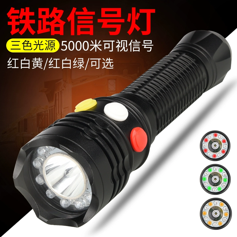 Liekachi Q5 ánh sáng mạnh đèn tín hiệu đường sắt đèn pin ba màu đèn tín hiệu ngoài trời ánh sáng cứu sinh ánh sáng ba màu không thấm nước gậy leo núi tự vệ gậy leo núi đường dài